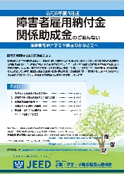 障害者作業施設設置等助成金、障害者福祉施設設置等助成金 、重度障害者多数雇用事業所施設設置等助成金のパンフレット
