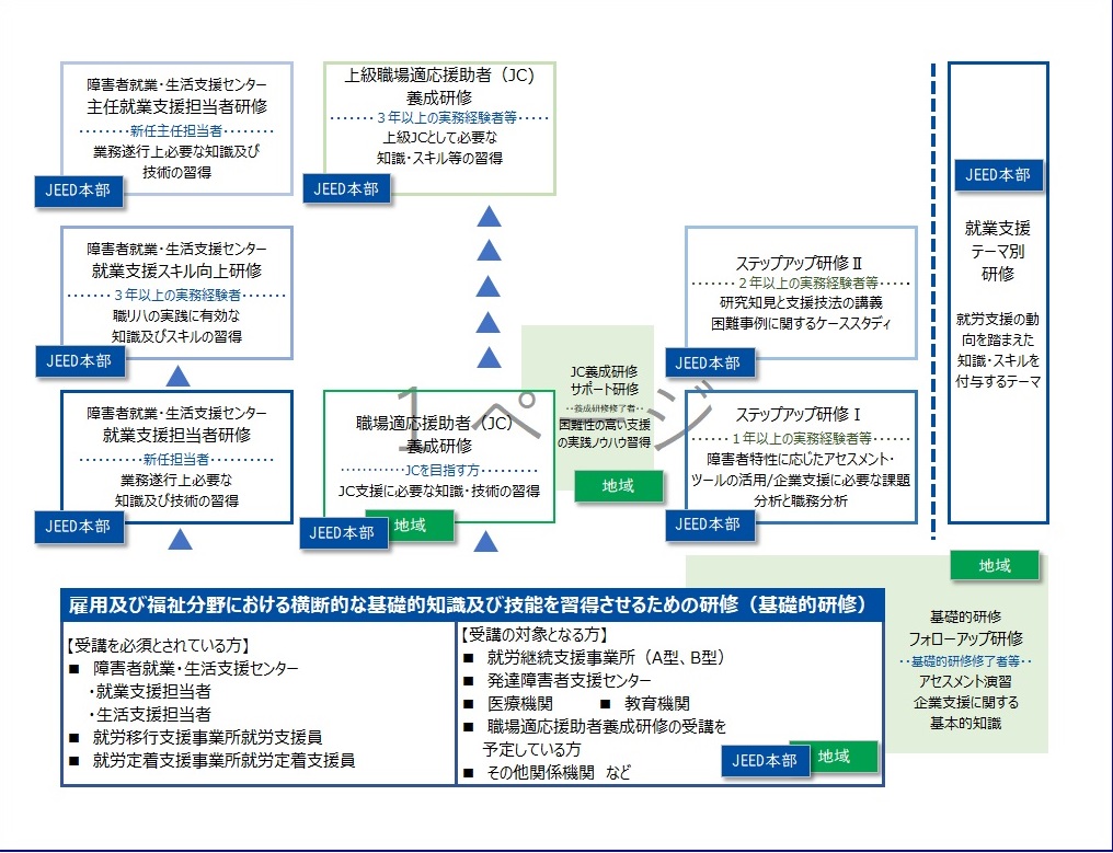 これらはステップアップ方式の研修体系になっており、職場適応援助者が継続的に学ぶ機会を提供しています。