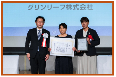 厚生労働大臣表彰最優秀賞を受賞したグリンリーフ株式会社様(右2名)