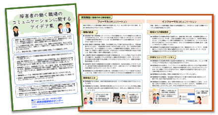 職場では日々、さまざまな情報のやり取り(コミュニケーション)が行われています。しかし、コミュニケーションに関して障害に起因する課題に直面している障害者も少なくありません。障害者職業総合センター研究部門では、職場のコミュニケーションに関して障害者と周囲の間に生じる課題、それを解消するための職場の配慮や本人が行っている工夫をまとめたリーフレット、「障害者の働く職場コミュニケーションに関するアイデア集」を作成しました。