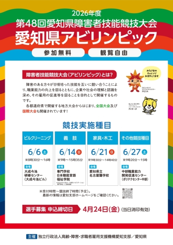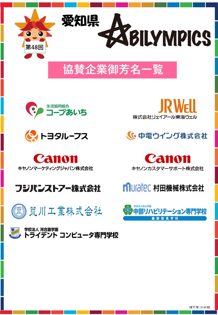 令和8年度第48回愛知県アビリンピックは、参加選手が日頃培った技術、技能を思う存分発揮し、未来につながる素晴らしい大会になるよう、協賛企業・団体様のご協力の下、開催いたします。