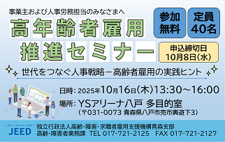 本ページ右上記載の高齢・障害者業務課 017-721-2125またはaomori-kosyo@jeed.go.jpへお問い合わせください。なお、ご質問の内容によりましては、回答までに数日お時間をいただく場合もございますので、ご了承ください。