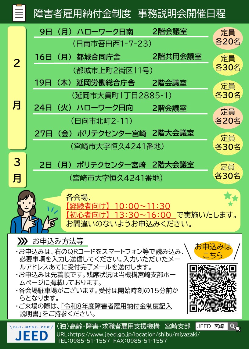 | 1 | 令和8年2月9日(月) | 13:30~16:00 | ハローワーク日南 2階 会議室 (日南市吾田1-7-23) |