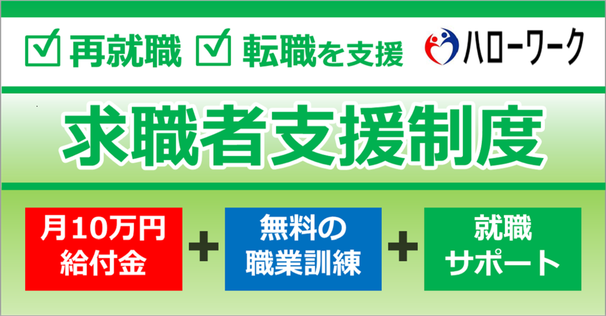 「求職者支援制度」とは雇用保険を受給できない方が、職業訓練によるスキルアップを通じて早期就職を実現するために国が支援する制度です。 ※受講を希望される方は、お住まいの地域を管轄するハローワークにご相談ください。