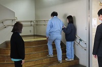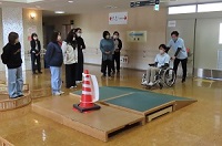 ・今まで何回か車いすを押したことはあったが、今回のようにやや急な坂や長い時間を経験したことはなかった。この講習は、これから生活相談員として活動していく中で、障害者の方をサポートする意味では有意義な経験になると思う。これからもこういう実習を受けていきたい。 (40代男性)